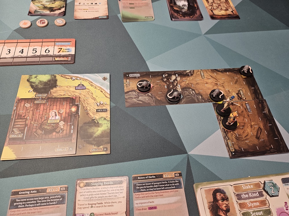 Entweder ist es also ein echt schlechtes Spiel, wo wir auf „die eine“ Begegnung warten müssen, bis sie zufällig auftauchte – was ich mir aber echt so nicht vorstellen konnte – oder wir hatten etwas übersehen! Wir gingen von letzterem aus, zumal noch so viele Spielinhalte ungeöffnet, und unglaublich viele Karten ungespielt waren. Blieb nur die Frage: Was war es? Könnten wir es Rückschließen und den Geschichtenverlauf heilen?
