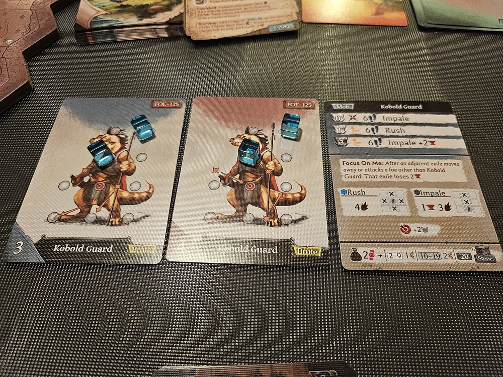 Der Kampf verlief zu unseren Gunsten, doch waren wir nun noch weiter angeschlagen. Und leider folgten den beiden Wachen weitere Kobolde… so viele! Nicht nur, dass weitere Koboldwachen mit Speeren auf uns zukamen, nun standen auch noch Steinschleuderer dabei und bewarfen uns aus zweiter Reihe, während wir mit den Speerkämpfern zu tun hatten.