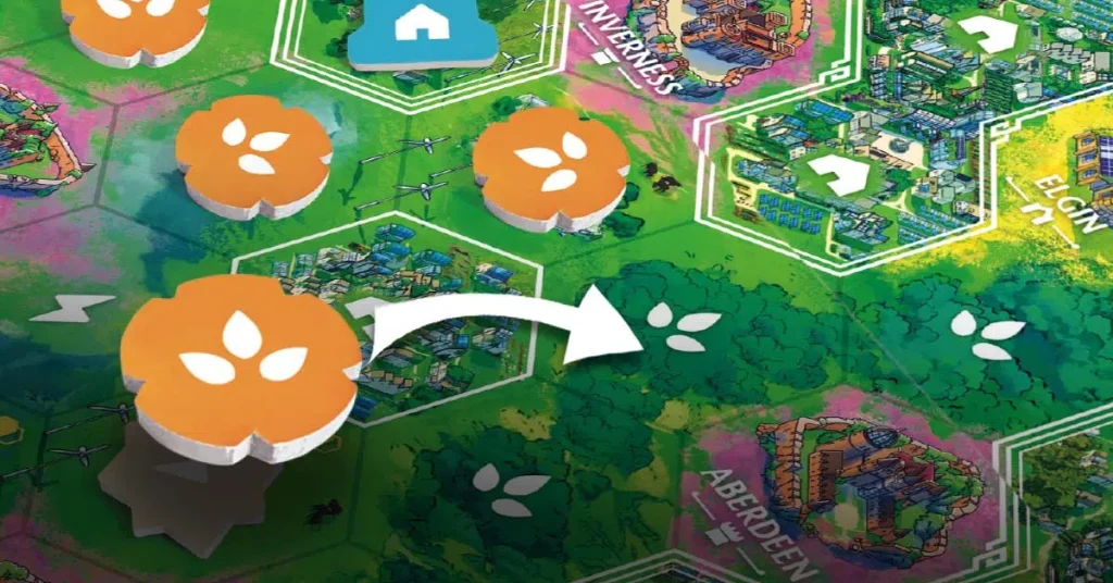 Die Punktevergabe ist hier der große Ärgerfaktor. Ich lege die Plättchen ihrem Symbol entsprechend in ein beliebiges Feld. Handelt es sich dabei um das erste eigene Plättchen dort, erhalte ich lediglich einen Punkt. Sollte ich es aber schaffen meine Plättchen auf benachbarte Felder zu legen, erhalte ich für das gelegte Teil so viele Punkte, wie Plättchen in der damit gebildeten Gruppe mit eigener farbe liegen. Große Punktemaschinen wollen die Mitspielenden natürlich verhindern, diese aber möglichst selbst erreichen. Es gibt noch eine andere Punktevergabe mit Häuschen auf den Plättchen, aber im Grunde funktioniert das Spiel hauptsächlich auf diese Weise – Egal ob in Schottland oder Irland. Zudem bauen wir Burgen und Kathedralen. Burgen sind ein Abgleich der Mehrheiten der umgebenden Felder und geben am Ende nochmal Punkte. Kathedralen geben Zielkarten, die bei Erfüllen am Ende auch noch Punkte geben. That’s it. Klingt beinahe zu einfach, aber es macht ziemlich viel Spaß.