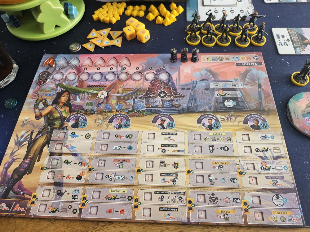 Am Ende sammeln wir auch hier wieder, wie in der ersten Episode, die Gunst von Gefolgsleuten. Wer die meisten Follower überzeugen kann wird auch diese Episode gewinnen. Und so verwundert es kaum, dass neben all den anderen wichtigen Mechaniken um die notwenigen Arbeitsschritte auf der Insel von der genannten Politik überschattet werden. Wer Menschen beeinflusst ersetzt neutrale Würfel mit solchen in der eigenen Farbe. Diese dürfen auch von Mitspielern genutzt werden, wenn man die gewürfelte Seite von dem andersfarbigen Arbeiter benötigt. Diese werden aber in den Reihen dieser Spieler schlecht über sie reden und den Einfluss des Spieler durch den Verlust von Followern dämpfen.