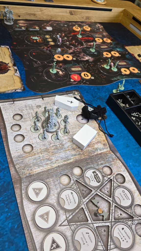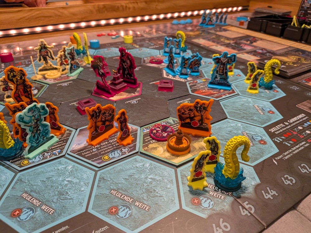 Das Spiel ist gemein, dreckig und lässt einen schneller verzweifeln als man glaubt! Ich liebe es! Denn um so belohnender sind die unzähligen Momente, in denen man einen Kampf oder eine wichtige Quest für sich entscheiden konnte. Ständig wird gejubelt obwohl es kurz zuvor noch so unmöglich wirkte. Denn plötzlich kommt da jemand unter den Spielenden auf die rettende Idee und holt das Beste aus der Situation heraus. Die vier Runden vergingen wie im Fluge, auch wenn es doch ziemlich genau vier Stunden waren, die abseits der Regelerklärung für das Spiel zu dritt nötig waren.