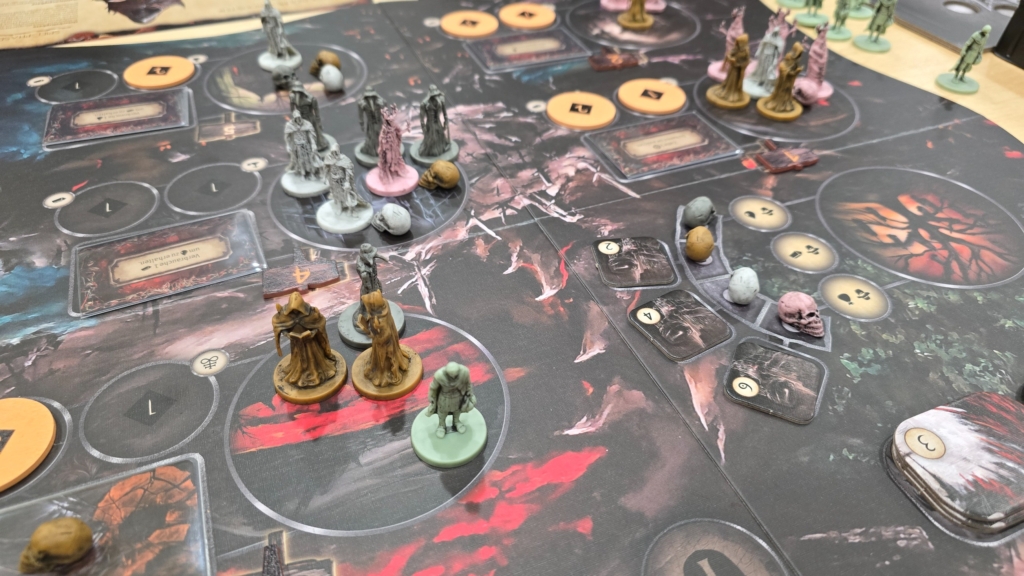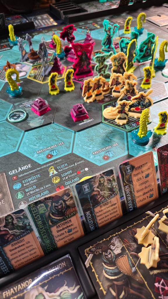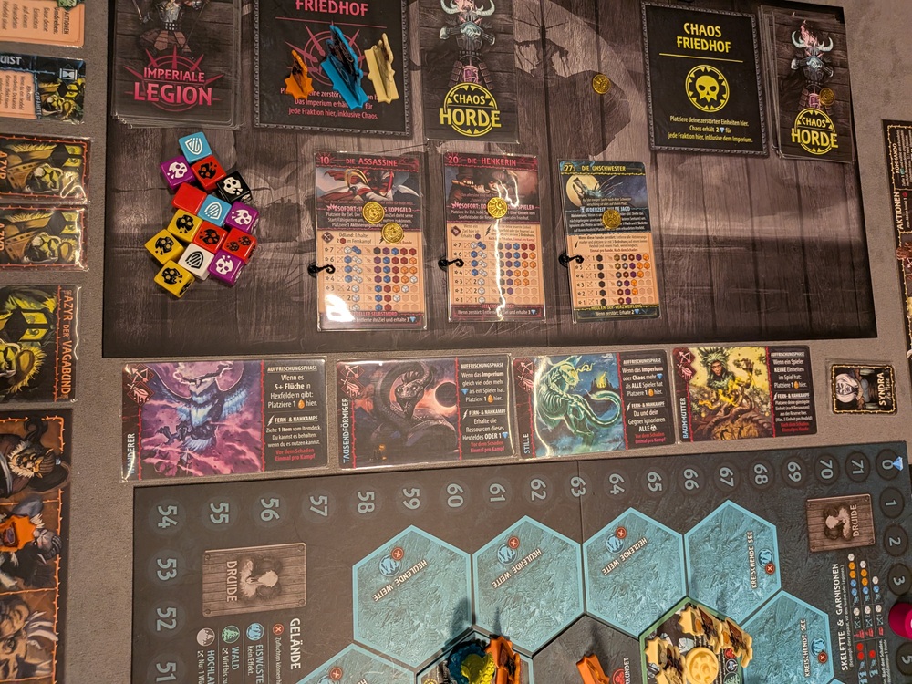 Ich habe noch nichts vergleichbares gespielt. Die Kämpfe funktionieren mit dem Würfelmechanismus schnell und einleuchtend, sind herausfordernd und lassen verzweifeln. Quests sind oft sehr Belohnend und meist das Zünglein an der Waage. Doch auch die speziellen Fähigkeiten der Fraktionen lassen sich wunderbar mit denen der Mitspieler vereinen. Da man gemeinsam nur dann gewinnt, wenn jeder Spieler mehr Punkte hat als die höchste der beiden gegnerischen Fraktionen, passt man gegenseitig aufeinander auf und es entsteht eine sehr positive Interaktion zwischen den Spielenden.