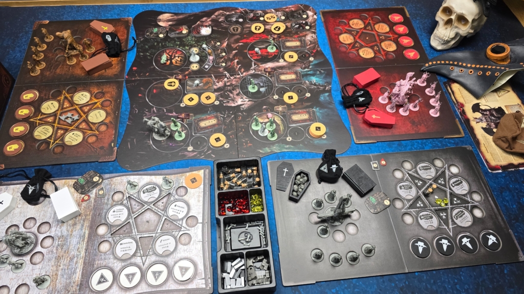 Leider ist die Anleitung, vor allem die saubere Nutzung von Begriffen, nicht sehr gut gelungen. Das ist wohl bereits in der englischen Fassung ein Problem und hat sich in die Übersetzung anscheinend 1:1 eingeschlichen. Nun ist das Spiel ein Erstlingswerk des kleinen Verlags, die sich mit Material und Optik echt Mühe gegeben haben und dabei mal etwas völlig anderes geschaffen haben. Ich kenne zumindest kein Spiel, dass vergleichbar mit Dark Blood wäre und dafür ist, wie bereits erwähnt, ein schönes Gesamtwerk entstanden.