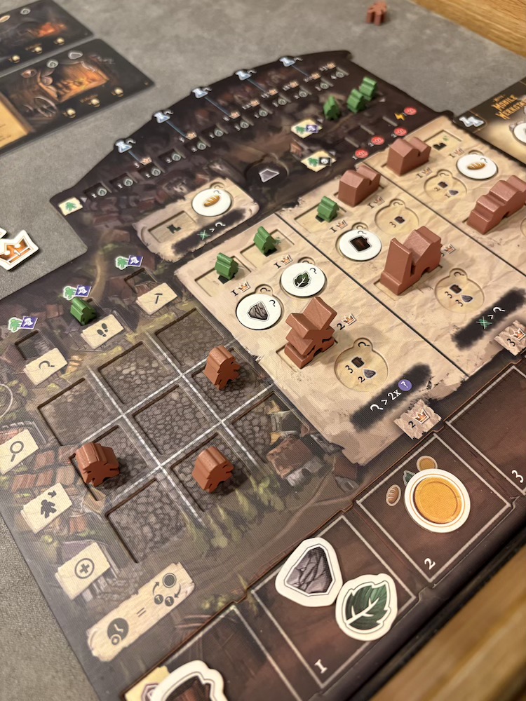 Wir spielen Pest-Doktoren heilen Kranke, bauen Städte aus, platzieren geheilte Menschen dort, produzieren Ressourcen … es ist ein Eurogame! Die düstere Atmosphäre, die das Design verspricht, kommt nicht auf. Es ist wirklich mehr ein Ausbauen von Städten damit ich mehr Ressource bekomme, die ich wiederum für den Ausbau der Städte benötige. Klar lassen sich auch kranke Menschen heilen und Björn beweist, dass man damit auch (fast) gewinnen kann.