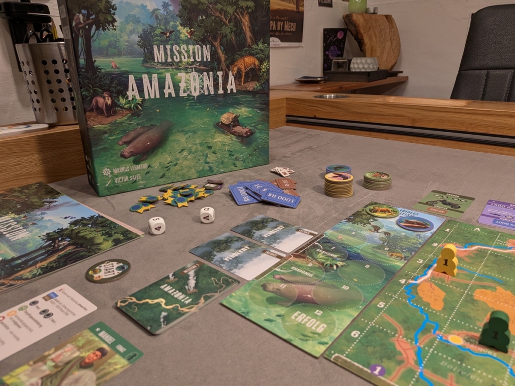 Anfangs habe ich befürchtet es mit einem zu seichten Familienspiel zu tun zu haben. Weshalb ich das nicht gut gefunden hätte, fragt man sich da sicherlich. Die Antwort ist eigentlich simpel: In einem zu einfach gestrickten Spiel ist die Bandbreite der spieltechnisch übertragbaren Botschaft leider oft begrenzt. Bei Mission Amazonia haben wir es allerdings mit einem anfangs zwar übersichtlichen Spiel zu tun, welches sich aber von Kapitel zu Kapitel immer weiter entwickelt und am Ende bereits ein beachtliches Kennerspiel ist. Bereits das erste Kapitel hat es vom Schwierigkeitsgrad in sich und konnte bereits mit seinem Debut bei mir Vorfreude zu weiteren Spielrunden auslösen.