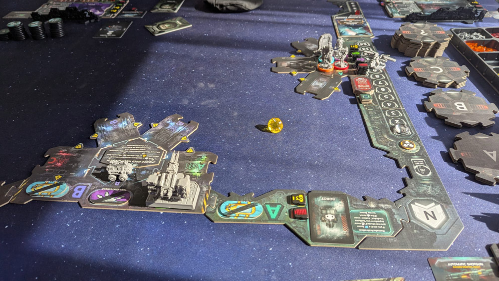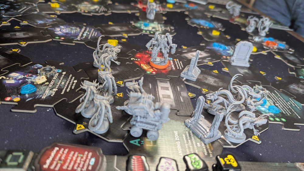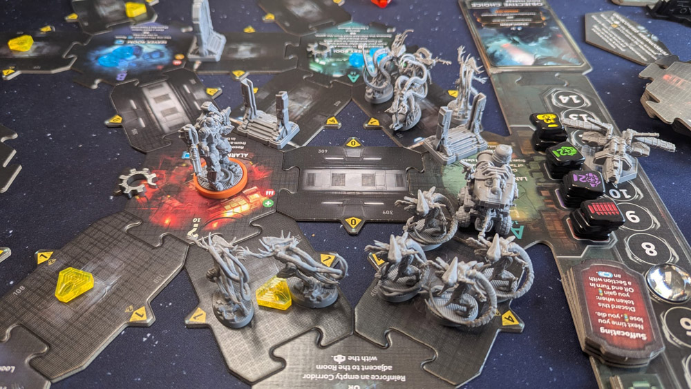Vorsichtig gehen lässt dich nicht aussuchen, wo du den Lärm machst. Du musst trotzdem würfeln, darfst aber einen Secure-Token in den Raum legen. Dieser kann einen Alienangriff abhalten.
