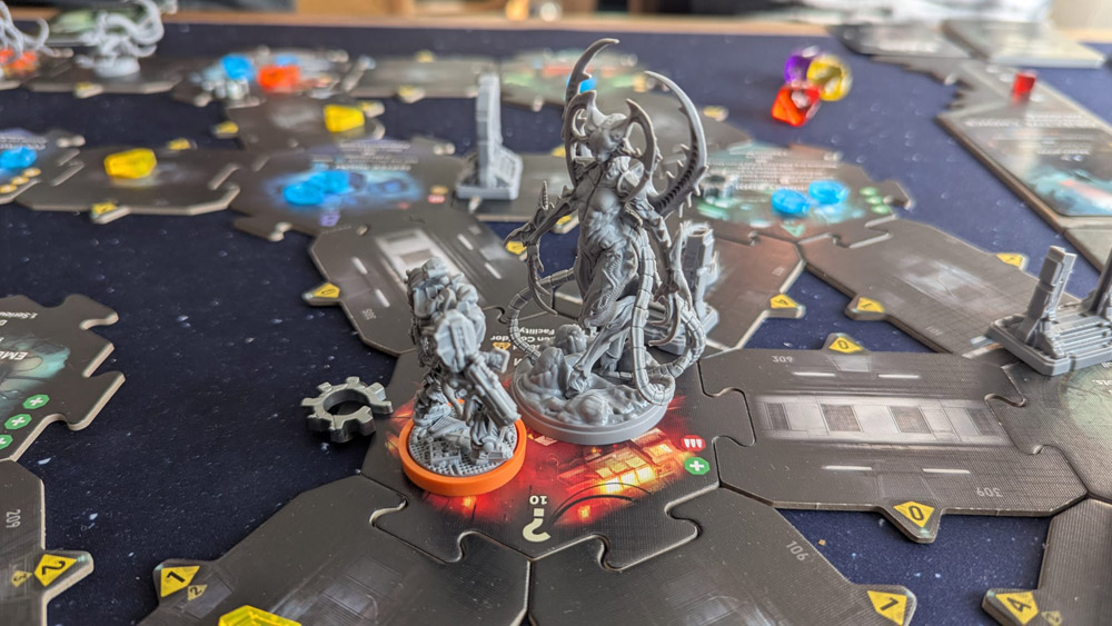 Das Spiel endet nicht, wenn alle Defekt-Token auf dem Spielfeld liegen, dafür erscheinen bei weiteren Defekten stattdessen Brände. Und wenn alle Brand-Token ausliegen, ist die Station zerstört.
