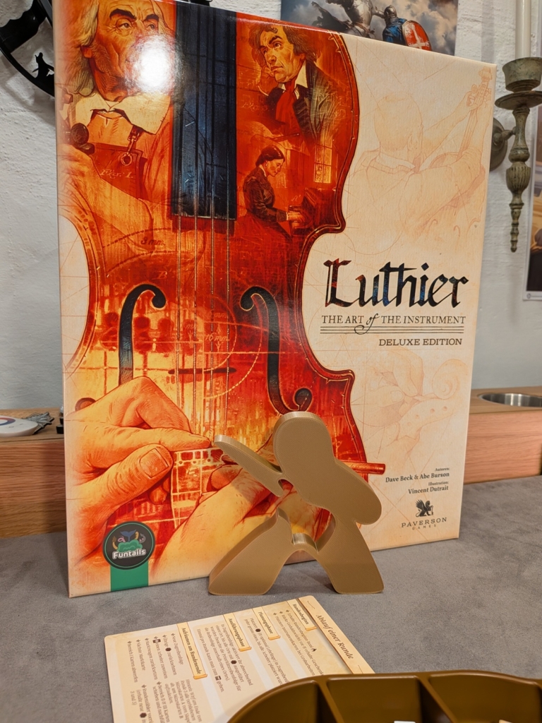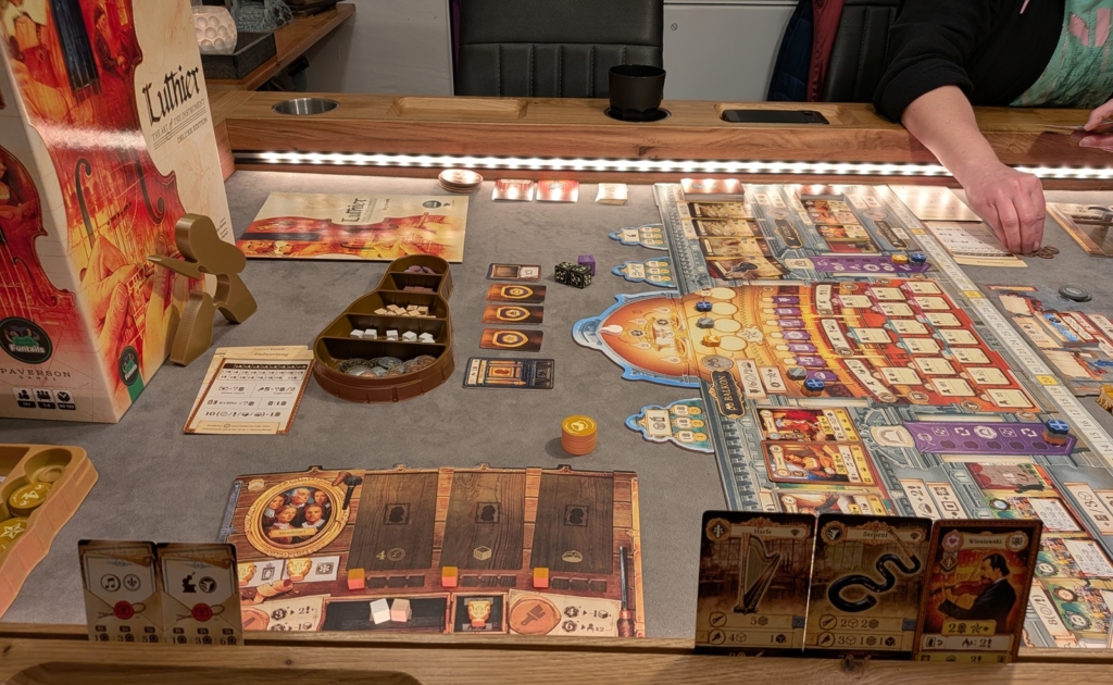 In Luthier verkörpert jeder Spieler eine ehrenvolle Familie von Instrumentenbauern zur Zeit des 17./18. Jahrhunderts. Angeordnet ist der Schauplatz im damaligen Europa. Jeder Spieler möchte die Familie der zu dieser Zeit erfolgreichsten Luthiere verkörpern (Luthier ist aus dem französisch abgeleitet für „Laute“ und bedeutet soviel wie Saiteninstrumentenbauer). Das Spiel wird 6 Runden gespielt, in denen wir versuchen die Bedürfnisse berühmter Mäzen zu erfüllen. Dabei bauen und reparieren wir Instrumente und geben kleine Privatkonzerte. Mit all diesen Aktionen machen wir nicht nur die Mäzen fröhlich, sondern sichern unseren Instrumenten den Vorsitz (also wichtigen ersten Platz der jeweiligen Instrumentenart) im Konzertsaal. Dies ist ein großer Punktebringer und sollte auf jeden Fall Beachtung finden!